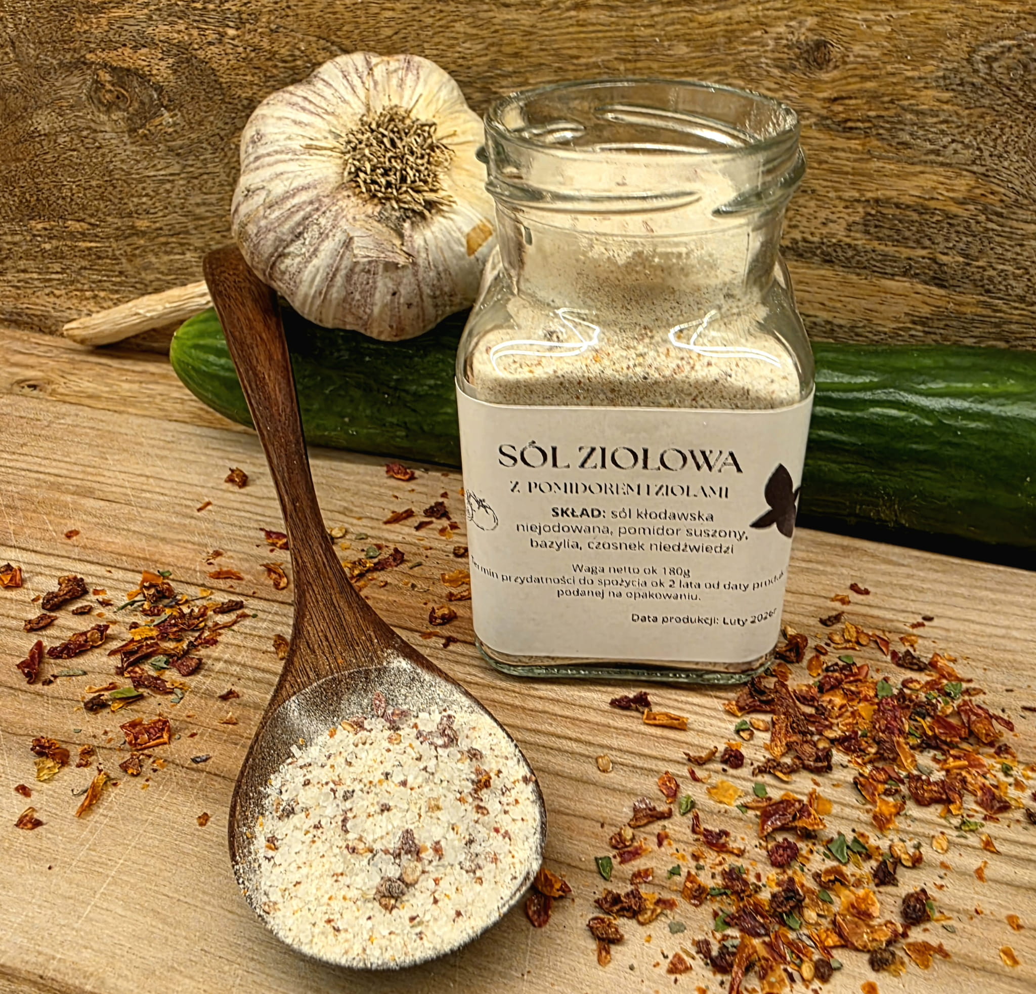 Sól ziołowa z suszonym pomidorem, czosnkiem niedźwiedzim i bazylią